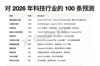 X 上有不少大咖和机构输出了对于 2026 的预测,我让 Claude 帮我整理出了最重要的 100 条