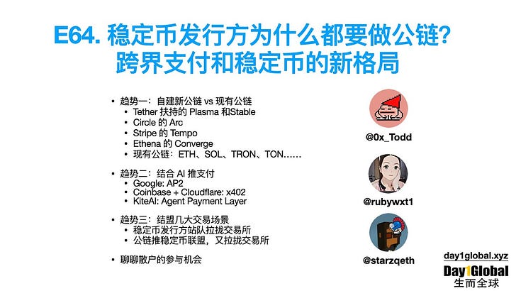 [音频+文字] E64. 稳定币发行方为什么都要做公链?AI支付、套利机会全解析 ft. Todd #149