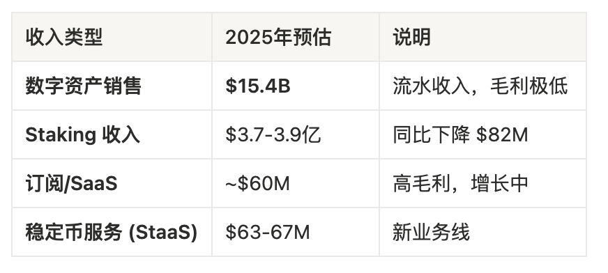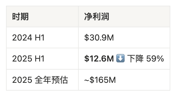 净利润 $165M 看起来不错,但多数来自持有的数字资产增值,实际营业利润只有 $3-4M。