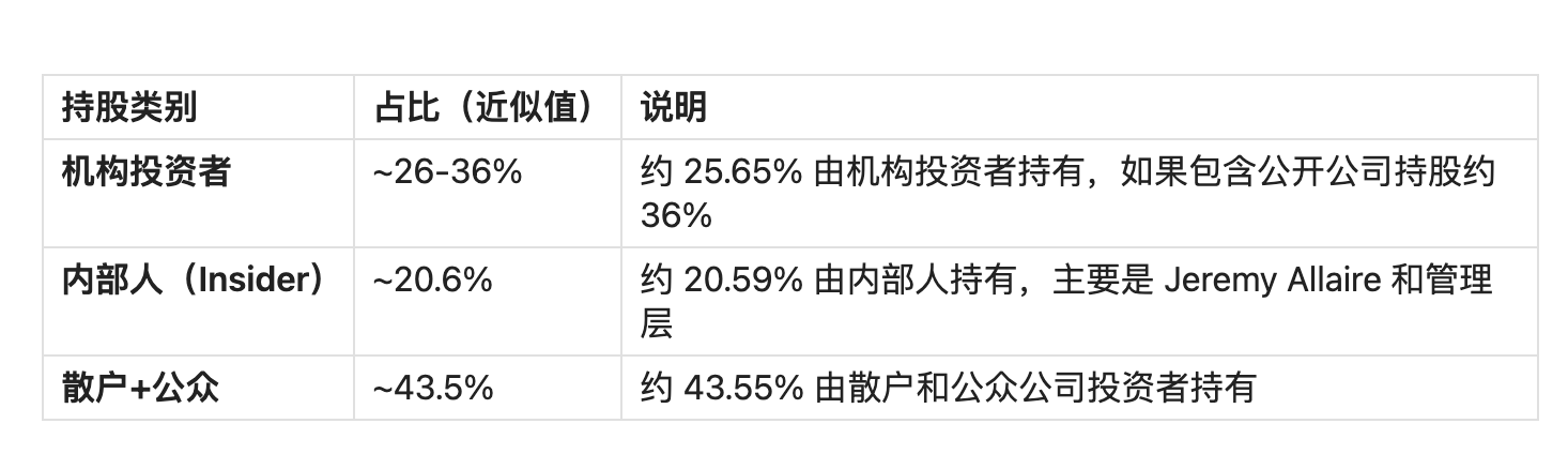 我特地查了下最新数据,Circle 的持股结构大致如下:
