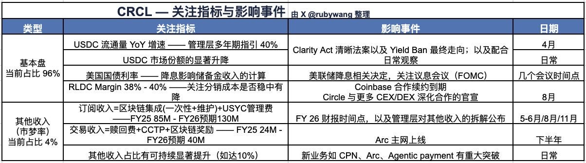 最后,我整理了今年关注 $CRCL的指标与影响事件供大家参考
