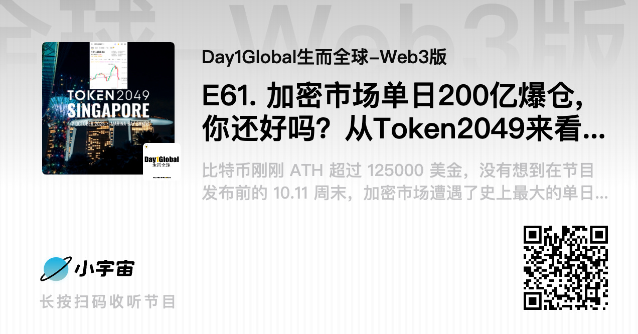 比特币刚刚 ATH 超过 125000 美金,没有想到在节目发布前的 10.11 周末,加密市场遭遇了史上最大的单日爆仓,接近 200 亿美金和短期的黑天鹅事件。