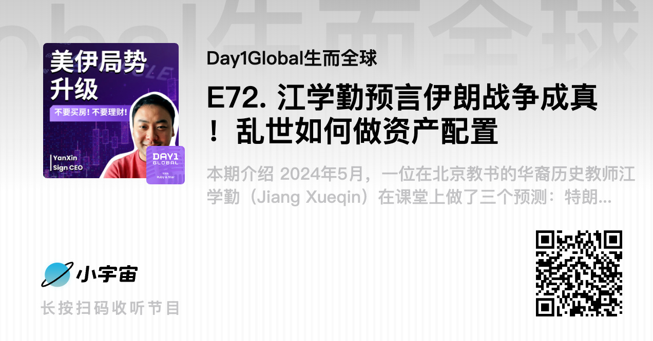 [播客精华稿] E72. 江学勤预言伊朗战争成真!乱世如何做资产配置? ft. YanXin