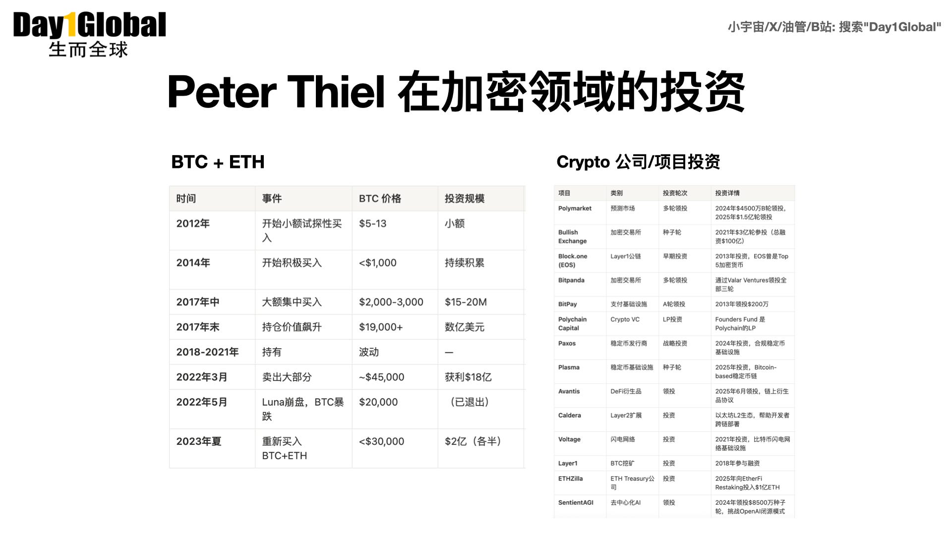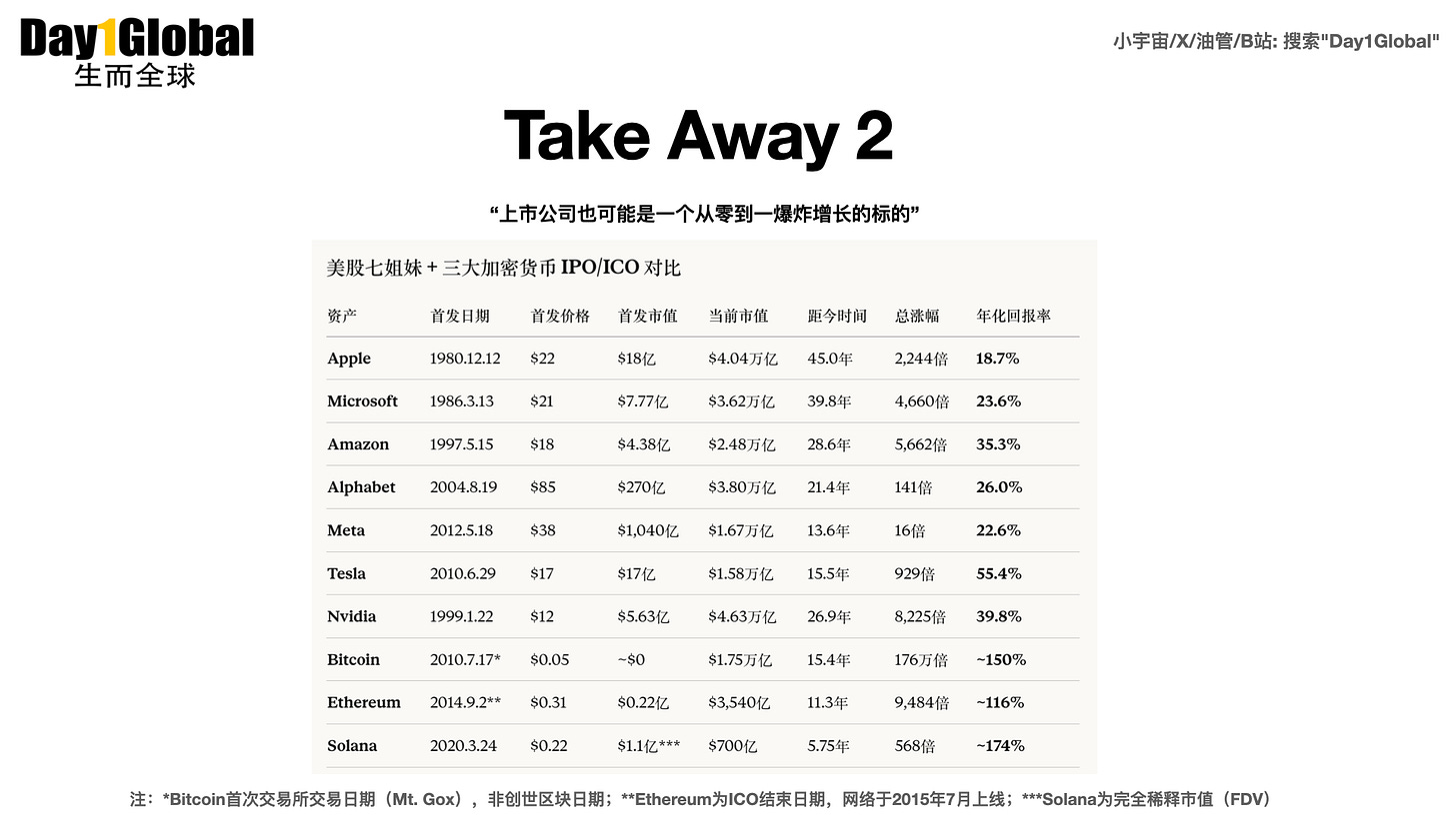 非共识洞察: 2012 年,主流观点视比特币为极客玩具或庞氏骗局。Thiel 却看到了其 “主权个人” 的属性:一种不受央行控制的储值工具,即 “数字黄金”。