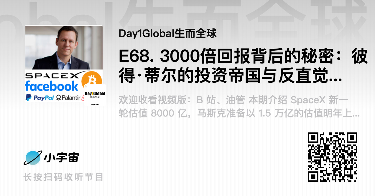 欢迎收看 / 收听 我们新年第一期播客《E68. 3000倍回报背后的秘密:彼得·蒂尔的投资帝国与反直觉哲学》