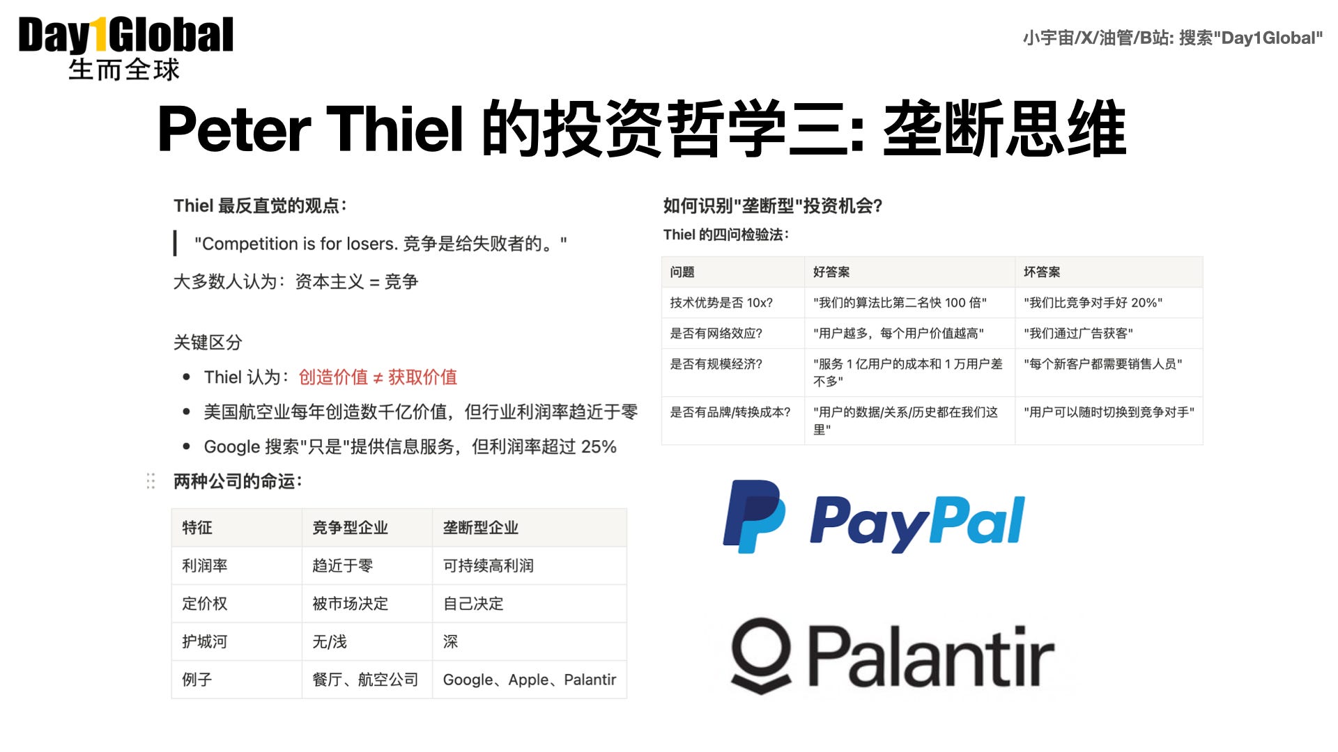 “竞争是一种观念,这种观念在整个社会中蔓延,扭曲了我们的思想。我多么希望自己年轻的时候就这么思考过。” —— Peter Thiel